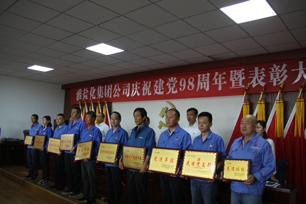会上,公司党委委员、雅染公司董事长李玉明宣读了《云开手机版app-云开(中国) 关于表彰2018年度先进集体和先进个人的决定》,党委委员、副总经理徐宪国宣读了《内蒙古雅布赖盐化集团公司党委关于表彰2018-2019年度先进党支部、优秀共产党员、党务工作者的决定》。在欢快的乐曲声中,出席会议的领导为获奖的先进集体和先进个人代表颁发了奖牌和荣誉证书。
