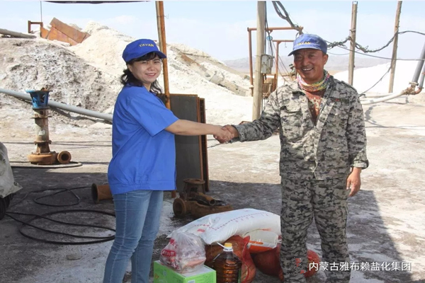 炎炎夏日,持续高温,正值公司生产高峰期,公司员工顶烈日、战酷暑,奋战在各自的工作岗位上,为完成全年生产经营目标任务积极努力。89日下午,集团公司开展“心系职工送关怀,一线慰问送清凉”活动,集团公司工会主席张菊萍、副总经理徐宪国亲赴一线,逐个走访采盐分厂、精盐分厂、生产技术部等单位的各作业班组,将防暑降温的饮料、西瓜、米面油、大肉等物品分发到员工手中,为高温天气下户外作业的员工送上一丝清凉。